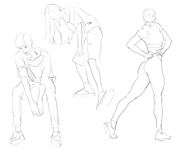 포즈마니악이 아닌 일반 사진을 보고 최대한 단선으로 그리기를 시도했습니다.