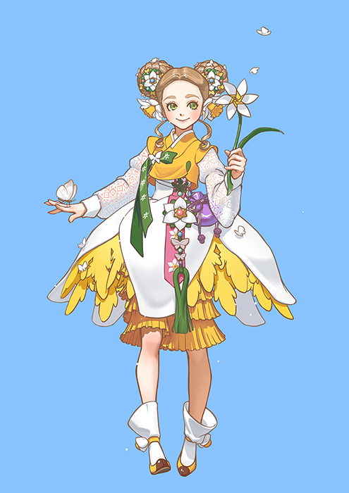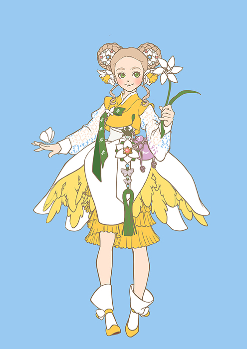 트위터에서 '악오'라는 분이 "만두머리에 떨잠단거 그려주세요.."라고 적으셨길래 저에게 요청하신 건 아니지만ㅎㅎ 손도 풀 겸, 봄 기분도 낼 겸 수선화 컨셉으로 디자인해서 그려봤습니다:) 아직 체력이 다 돌아오진 않아서 하루 2~3시간 정도씩 6일에 걸쳐 그렸어요. 참 재밌었습니다!!